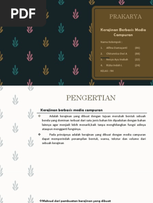 Prakarya kelas 9 smp/ mts semester 2 (genap) bab 1 yaitu tentang kerajinan berbasis media campuran. Kerajinan berbasis media campuran tentunya sangat penting untuk kita ketahui, entah yang bersifat spontanitas maupun ilmiah. Prakarya kelas 9 semester 2 draft. Merupakan penggabungan dari berbagai bahan yang tidak memiliki reaksi kimia tertentu ketika dilakukan penggabungan. Contoh soal hots prakarya kelas 9 kerajinan dan rekayasa, berikut mediailmu22 akan memberikan sebuah contoh soal tipe hots untuk mata pelajaran prakarya kelas ix dengan kurikulum 2013.