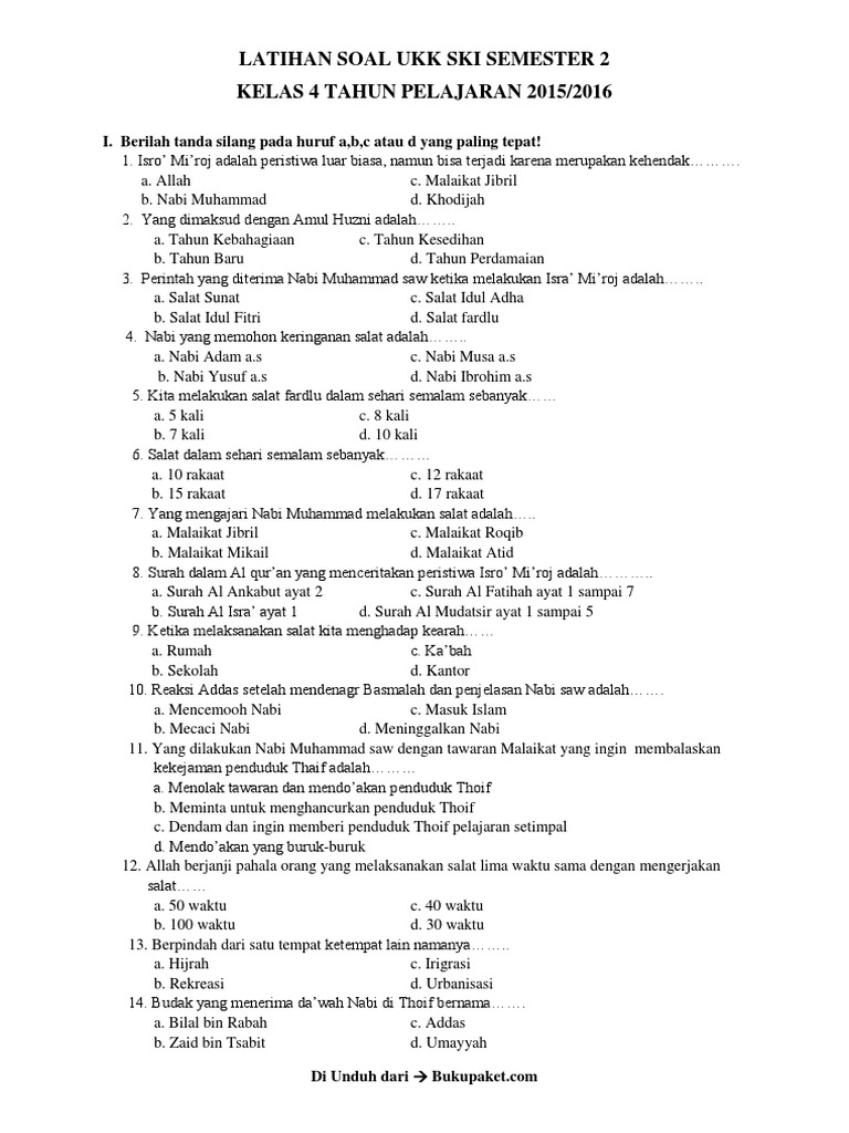 Soal Ukk Ski Kelas 5 Sd Dan Mi Pdf from imgv2-1-f.scribdassets.com 18 apr, 2015 post a comment. Soal ukk ski kls 5 mi semester 2 kurikulum 2013 berbagi jawaban 1. Text for number 1 to 5 my name is tiara. Format file soal soal pai kelas 3 ini dikemas dalam file pdf dan siap untuk di print sehingga memudahkan sobat. Download soal sd mi kelas 1 2 3 4 5 6 semester i dan ii soal fiqih kelas 3 mi. Berikut ini adalah contoh latihan soal ukk / uas matematika kelas 3 semester 2 terbaru tahun ajaran 2017/2018. Matematika k13 kelas 3 sd/mi. Setelah adanya perjanjian hudaibiyah, kaum quraisy bersekutu dengan… a.